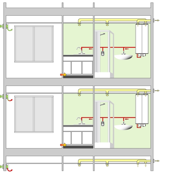 - Kompaktowe urządzenie z funkcjami: wentylacji i ogrzewania ciepłej wody użytkowej